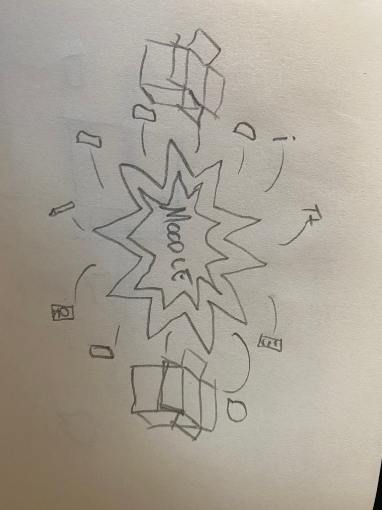 Okey, one of my assignments was to draw the Moodle platform as a school campus, I was could use a metaphor or something else, but it was up to me and how I looked at Moodle as a campus. I actually didnt think that hard on this one, it kinda came to me right away. When I first entered to site I look at it as a mess, and since my head also was a mess with expectations and tenseness about beginning school again in the first place, my head went BOOM. So much to get used to, so many places to navigate and so much links and text. But after awhile, just clicking and experimenting on the page made it more organized and I could get a better grip on what was going on. The more I used the page the easier I could navigate. Thats how I got the idea that the map should be a bomb being organized, get order in chaos. I wanted to make a cartoon blast, I think that it looks the best for this drawing, and icons fly away and lands in cardboard boxes, and gets organized. I added some icons that I think Moodle is about, like speech bubbles, documents, and other thinks that could be organized, and I added the glasses to represent learning. I drew some sketches before starting with the final product, and here they are: