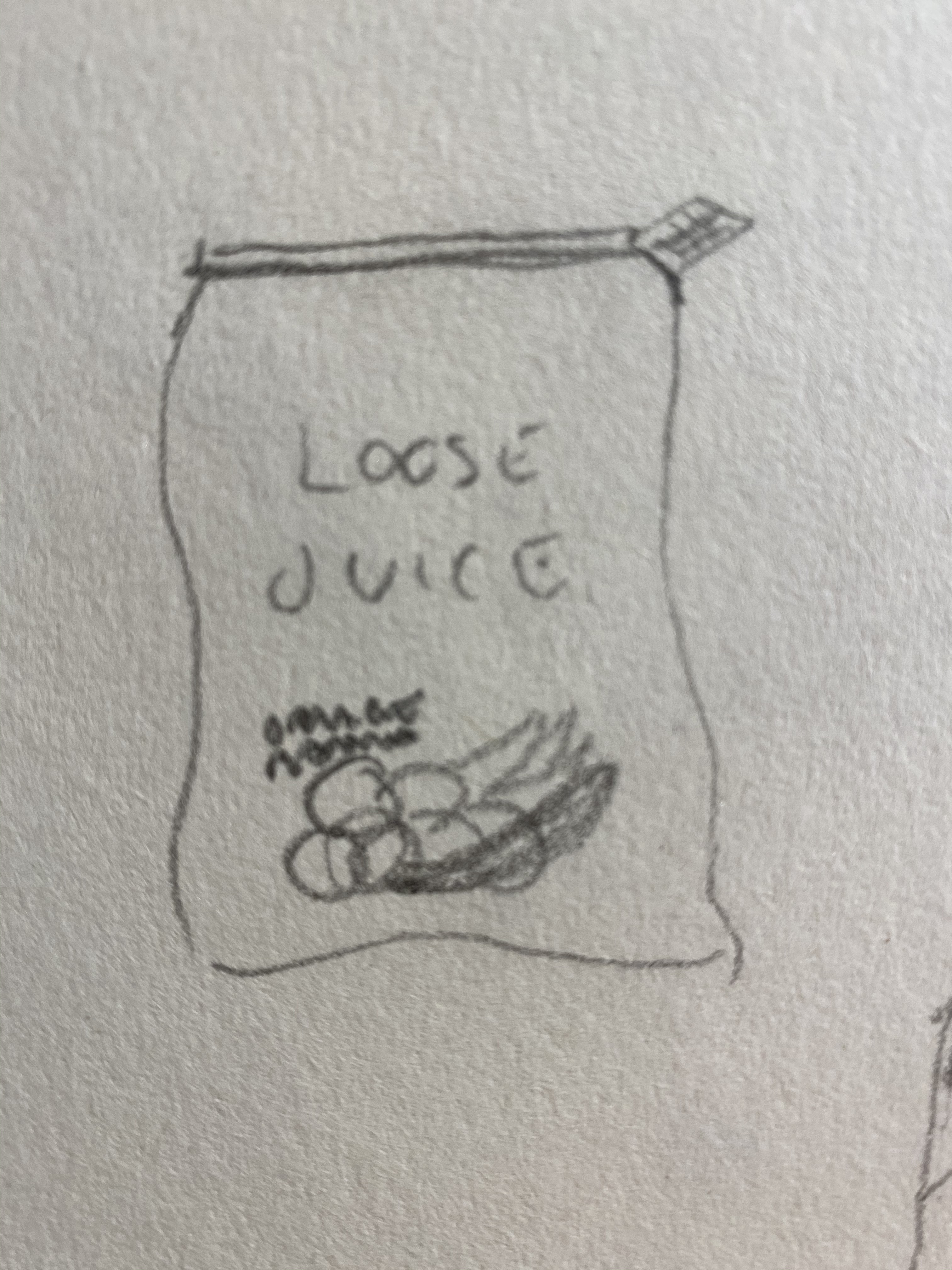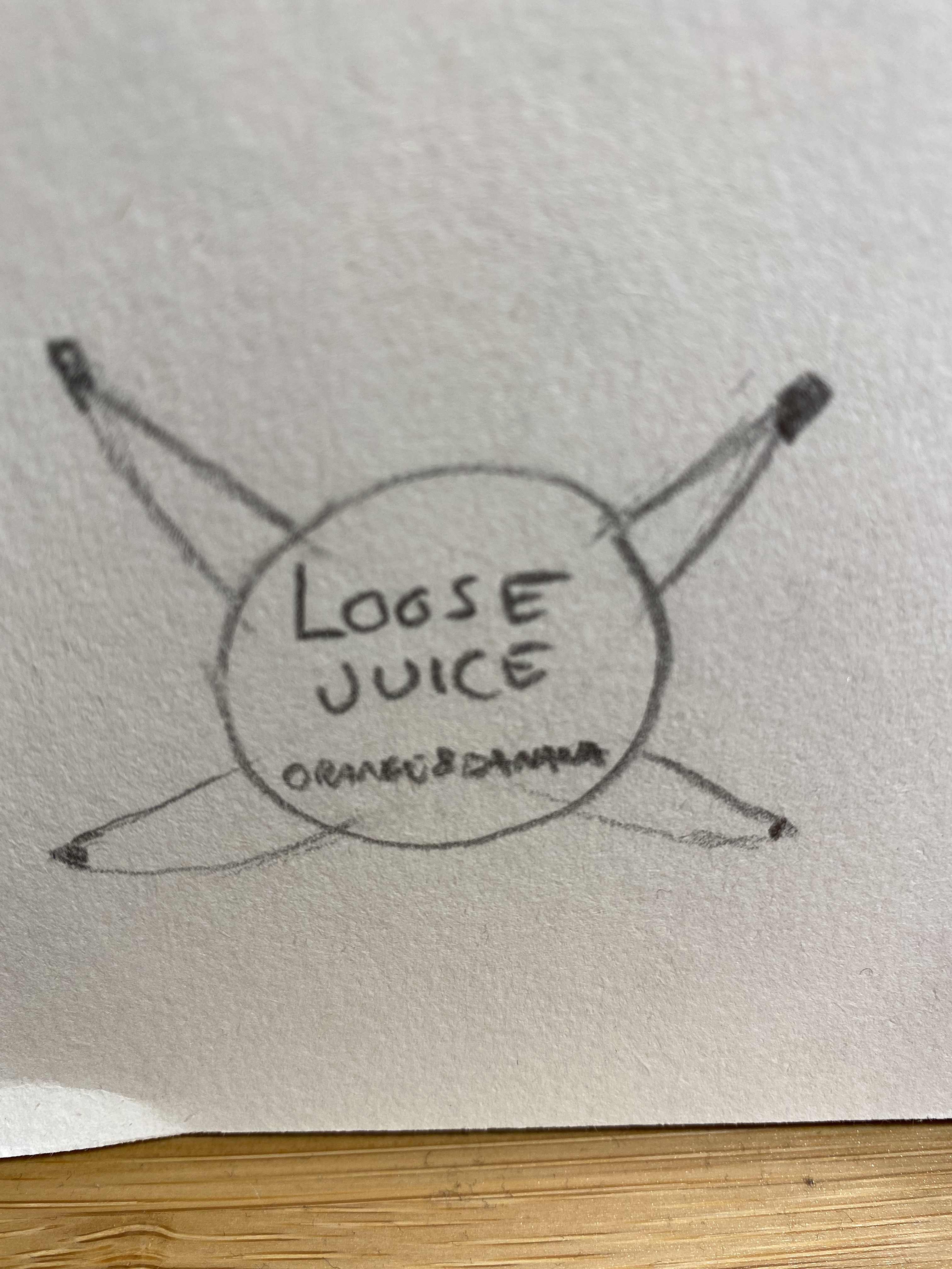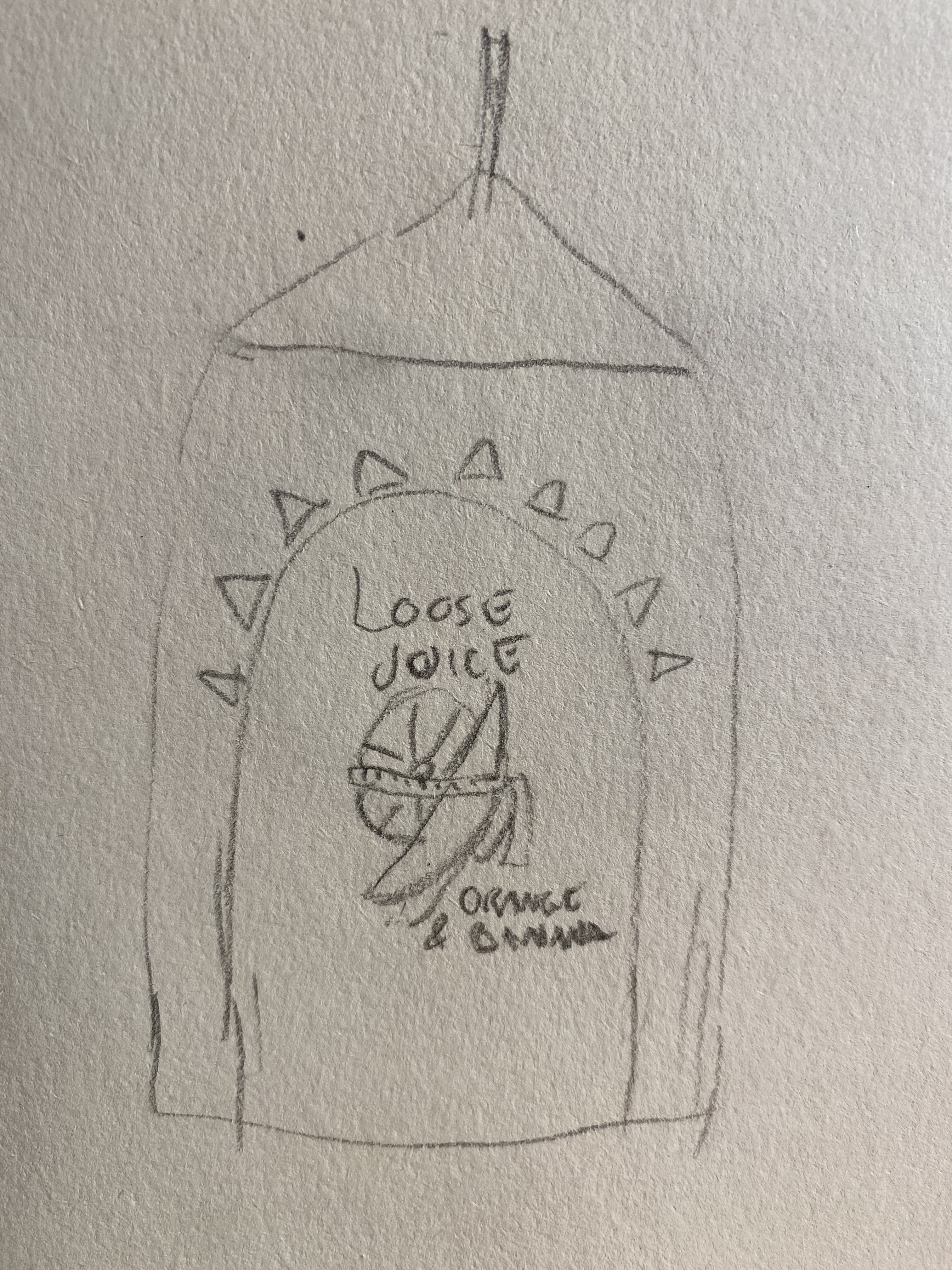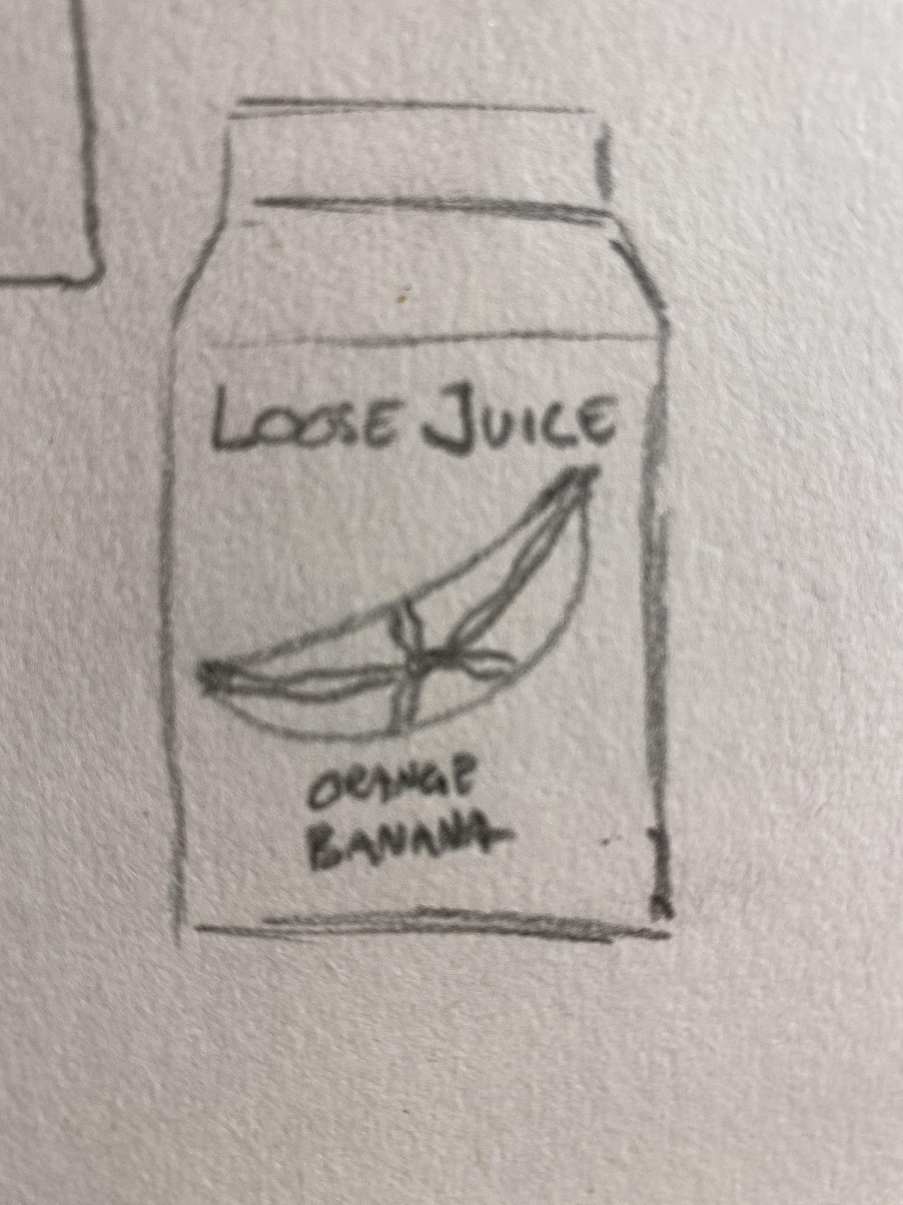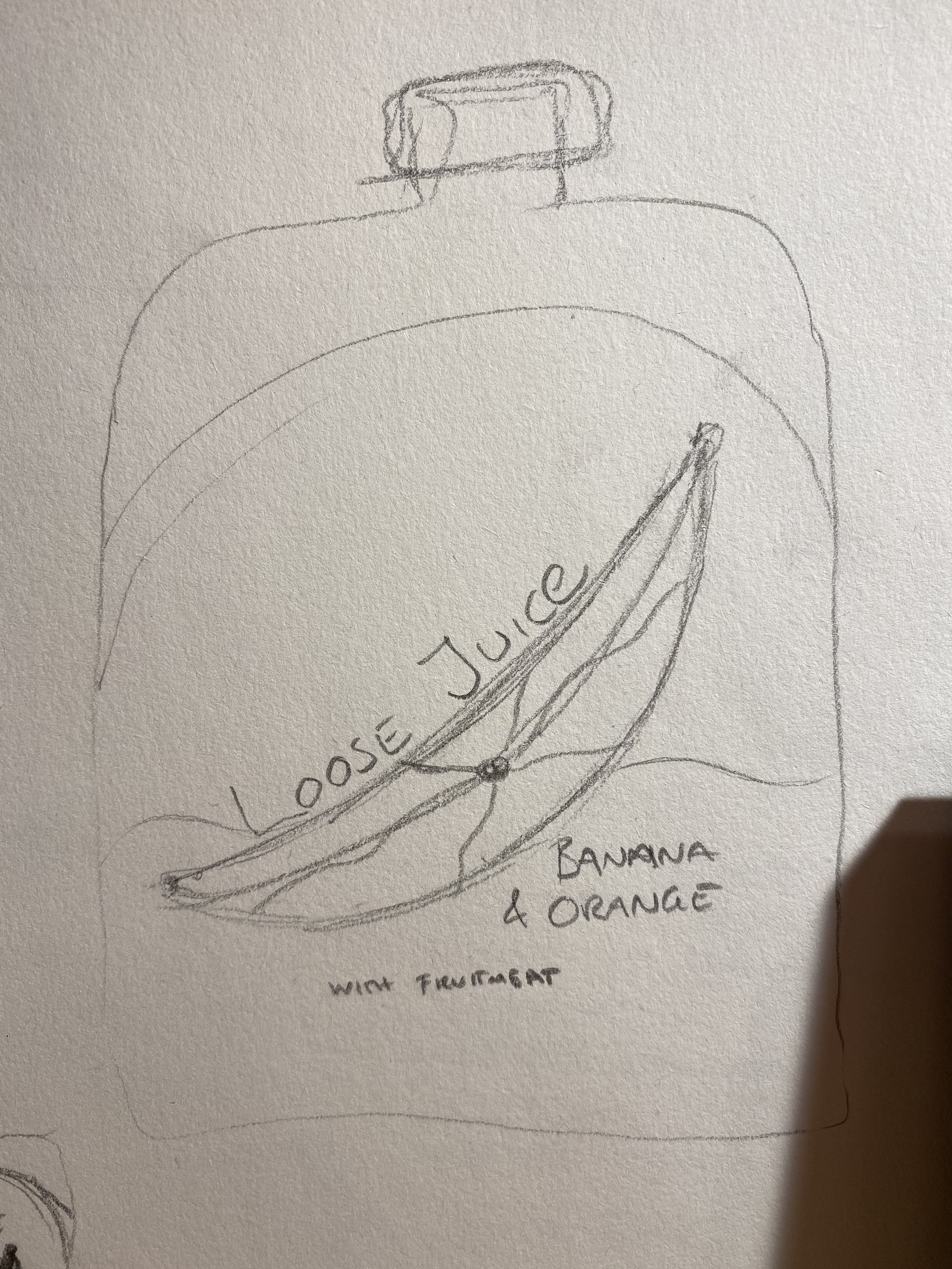 For this assignment we are to design a packaging to the juice “Loose Juice” with the flavor orange and banana. The name and flavor has to be present on the package. We must plan, sketch and scamper it around 15 times. Then we must choose the sketch we like the best and illustrate it in Adobe Illustrator.