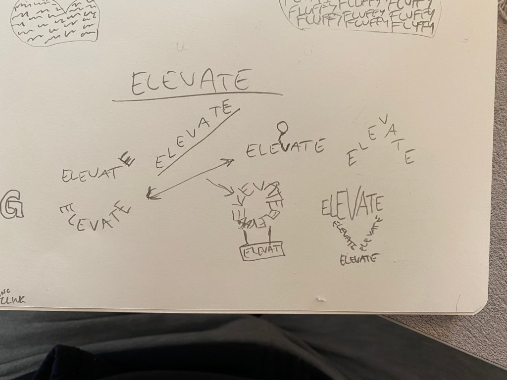 Its all in the same typeface but I used different sub types for the falling “fallings”. And then again for the last time it was time for the “elevate”, I did the same thing, chose a typeface but the balloon I distorted with the direct selection tool. Oh, I forgot to say that all the compositions are made in Adobe Illustrator! And here’s the last result: